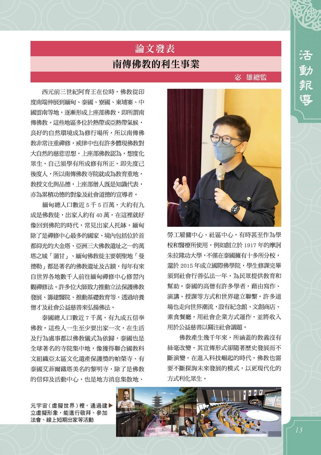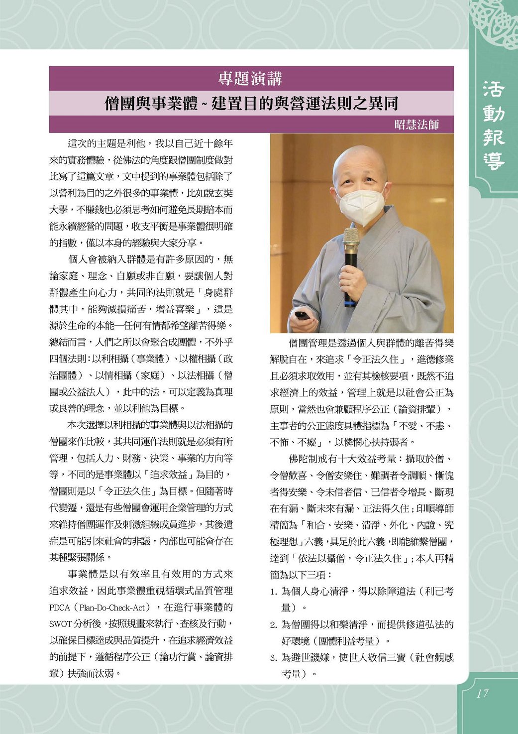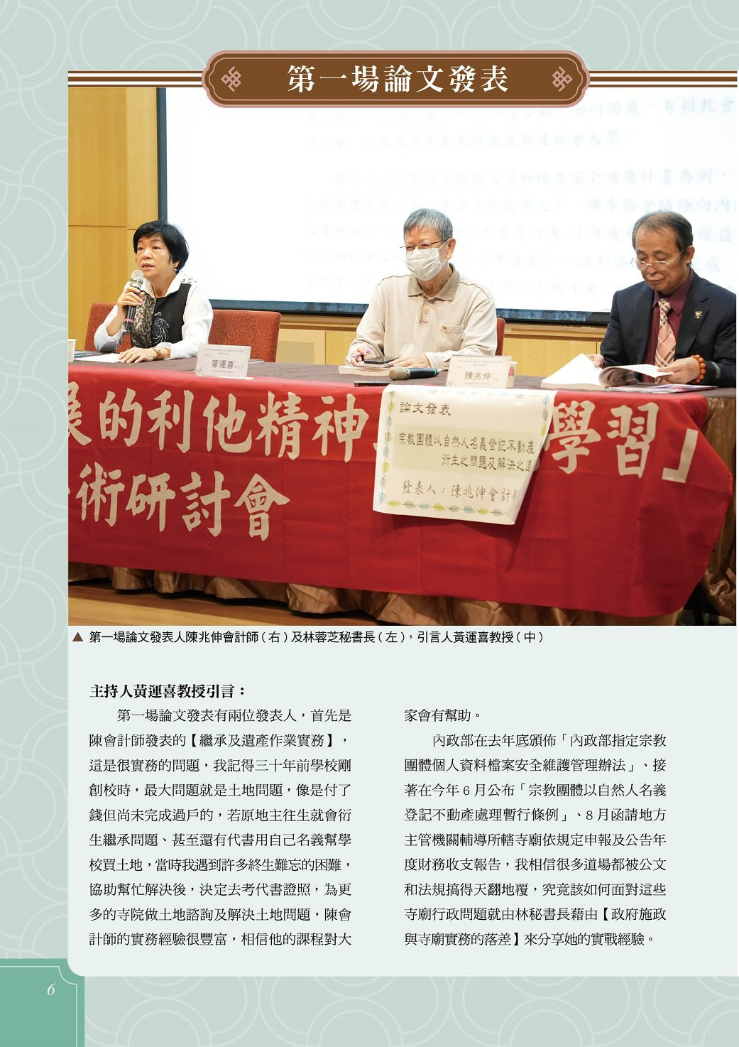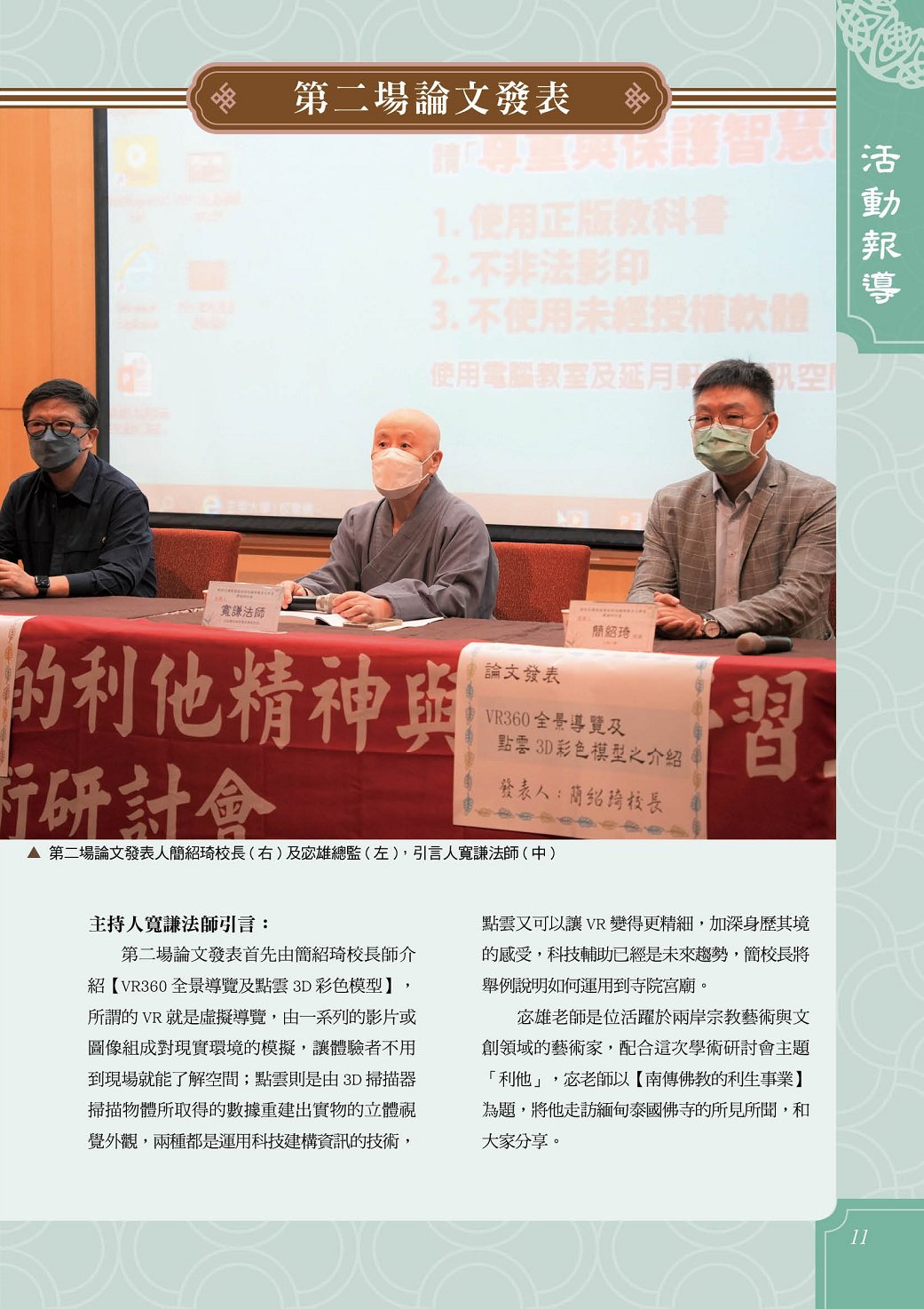 民國111年10月26、27日第三十屆寺務管理與發展研習紀實(新世代佛教發展的利他精神與多元學習學術研討會)