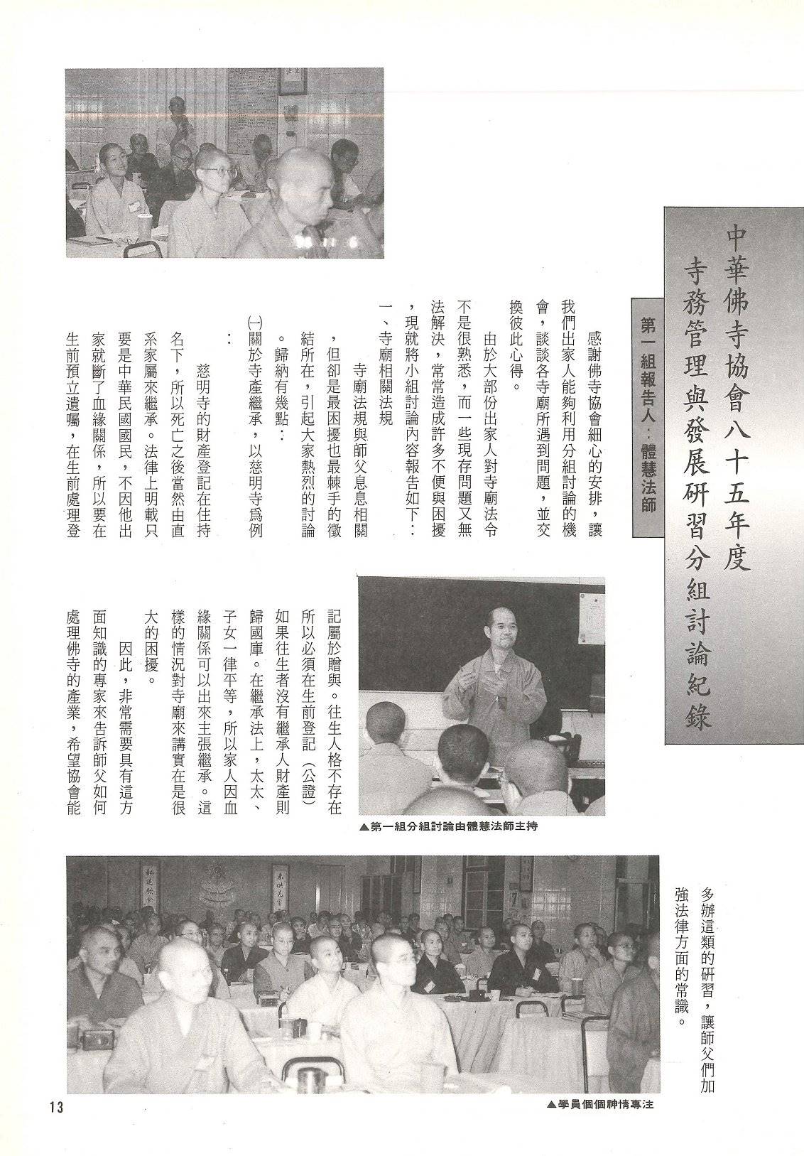 民國85年11月05~08日第四屆寺務管理與發展研習紀實