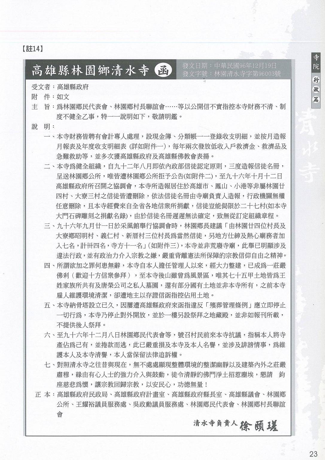 高雄清水寺—地方政治力介入宗教事務(信徒名冊)