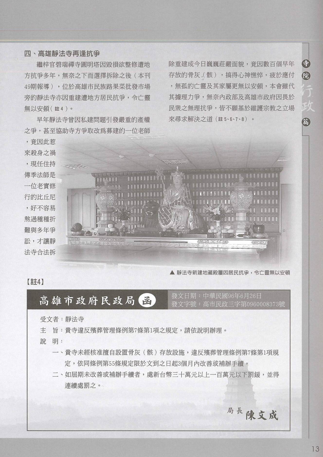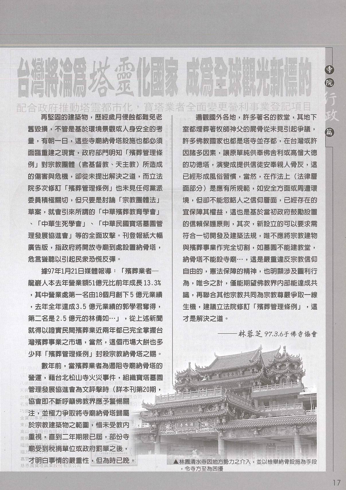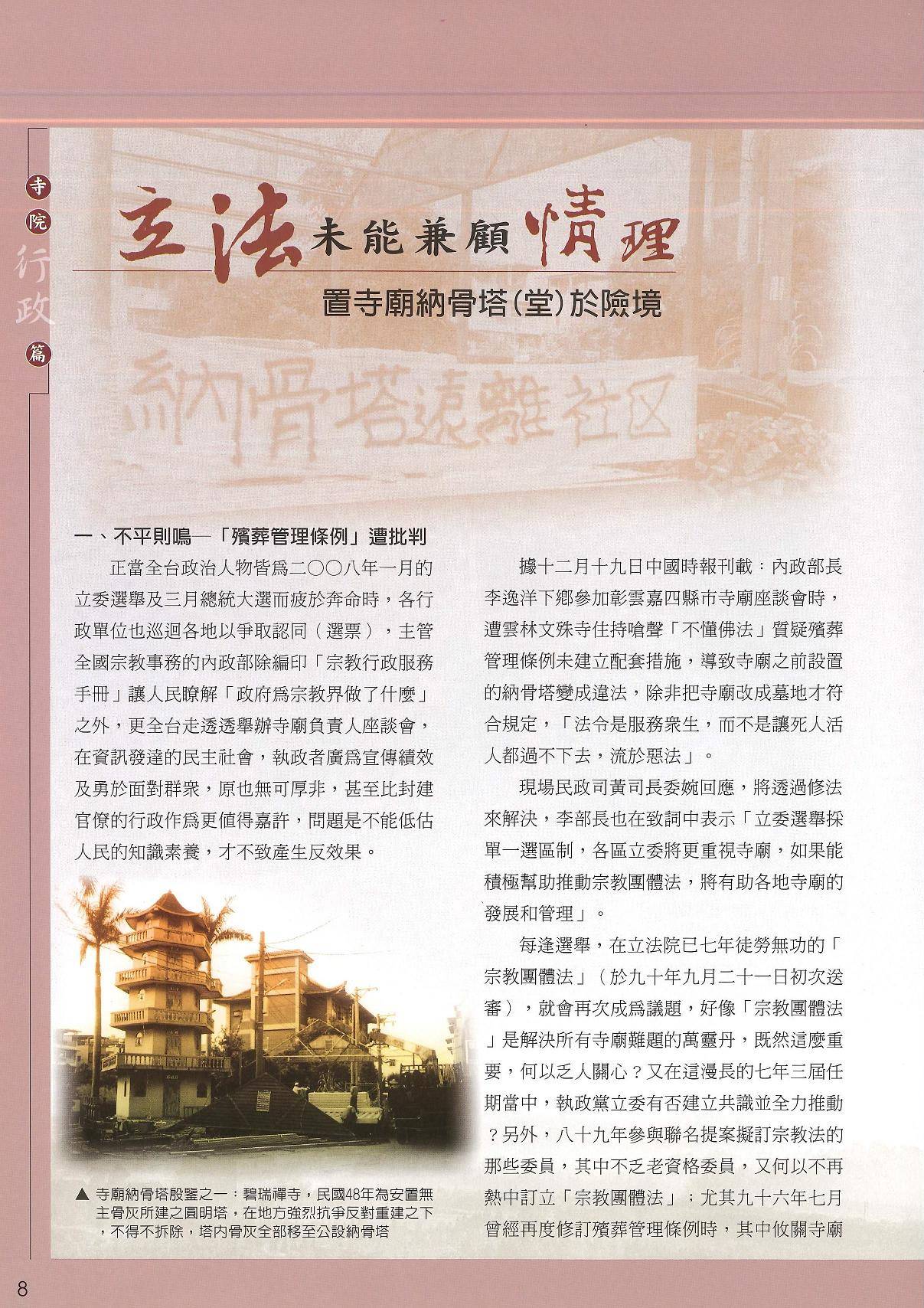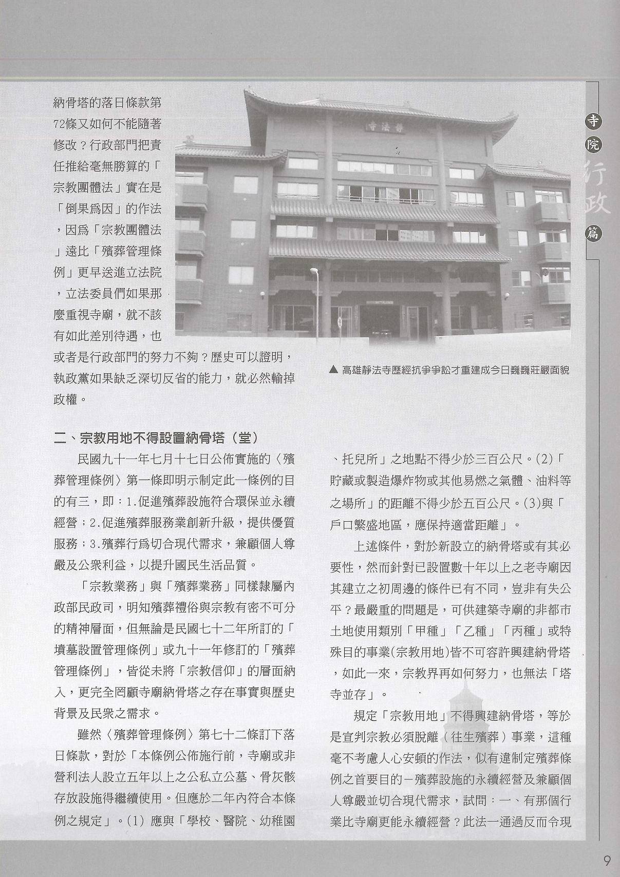 立法未能兼顧情理 置寺廟納骨塔於險境