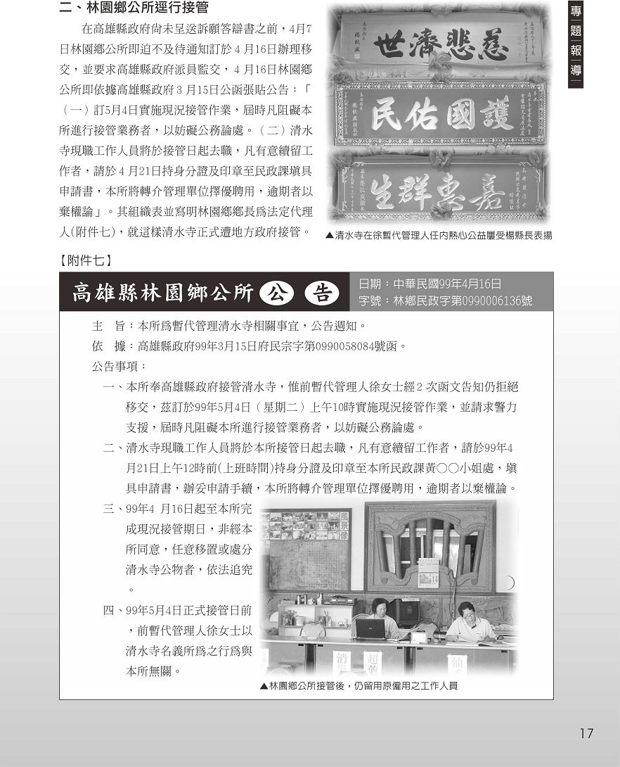 高雄清水寺—未待司法判決,行政權即強力介入(管理權)