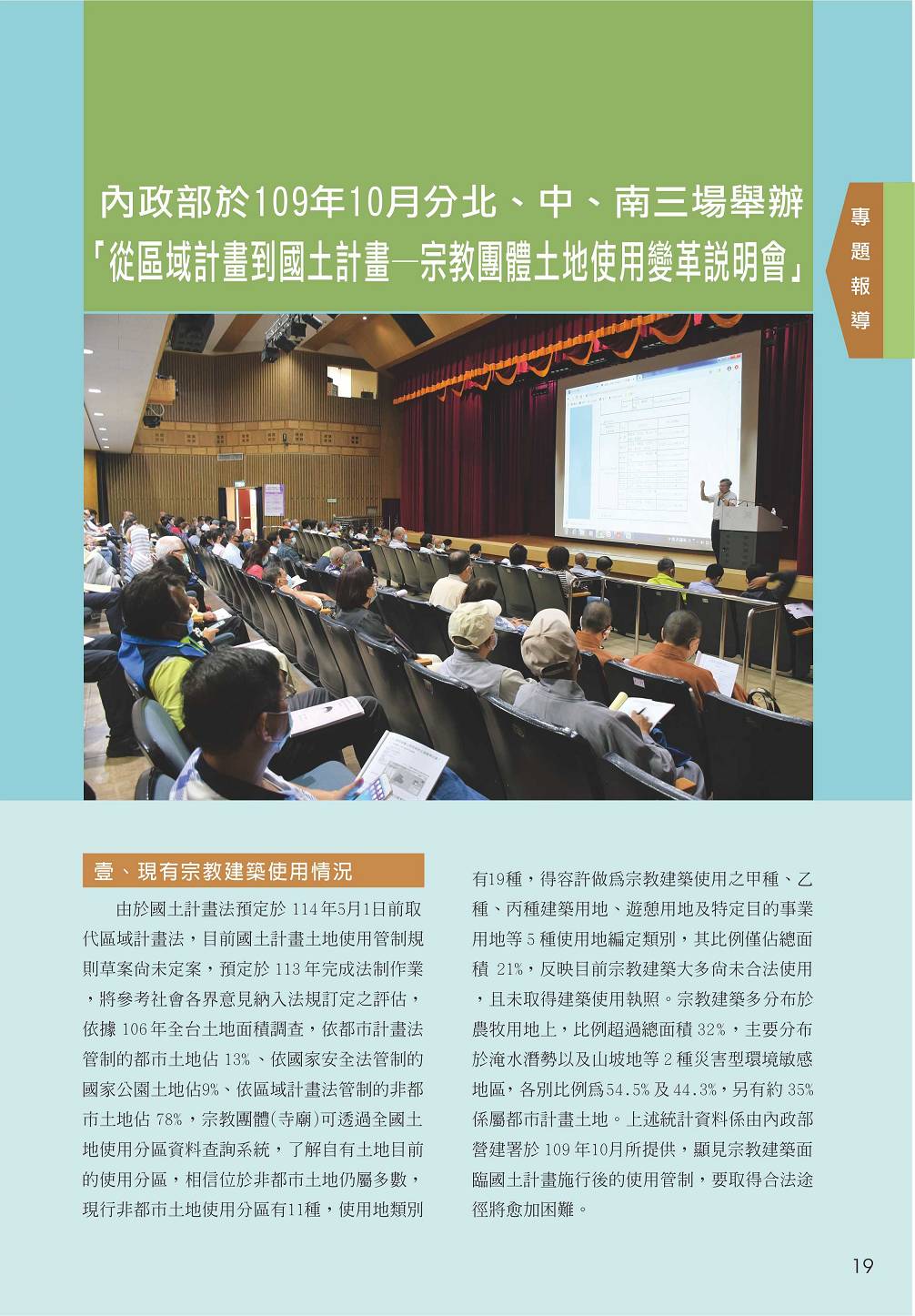 內政部109年10月舉辦「從區域計畫到國土計畫—宗教團體土地使用變革說明會」(國土計畫)