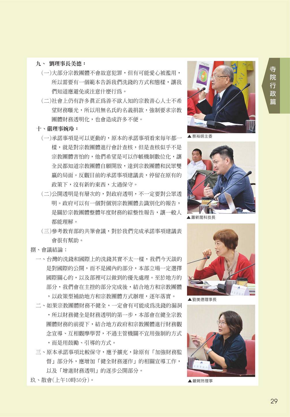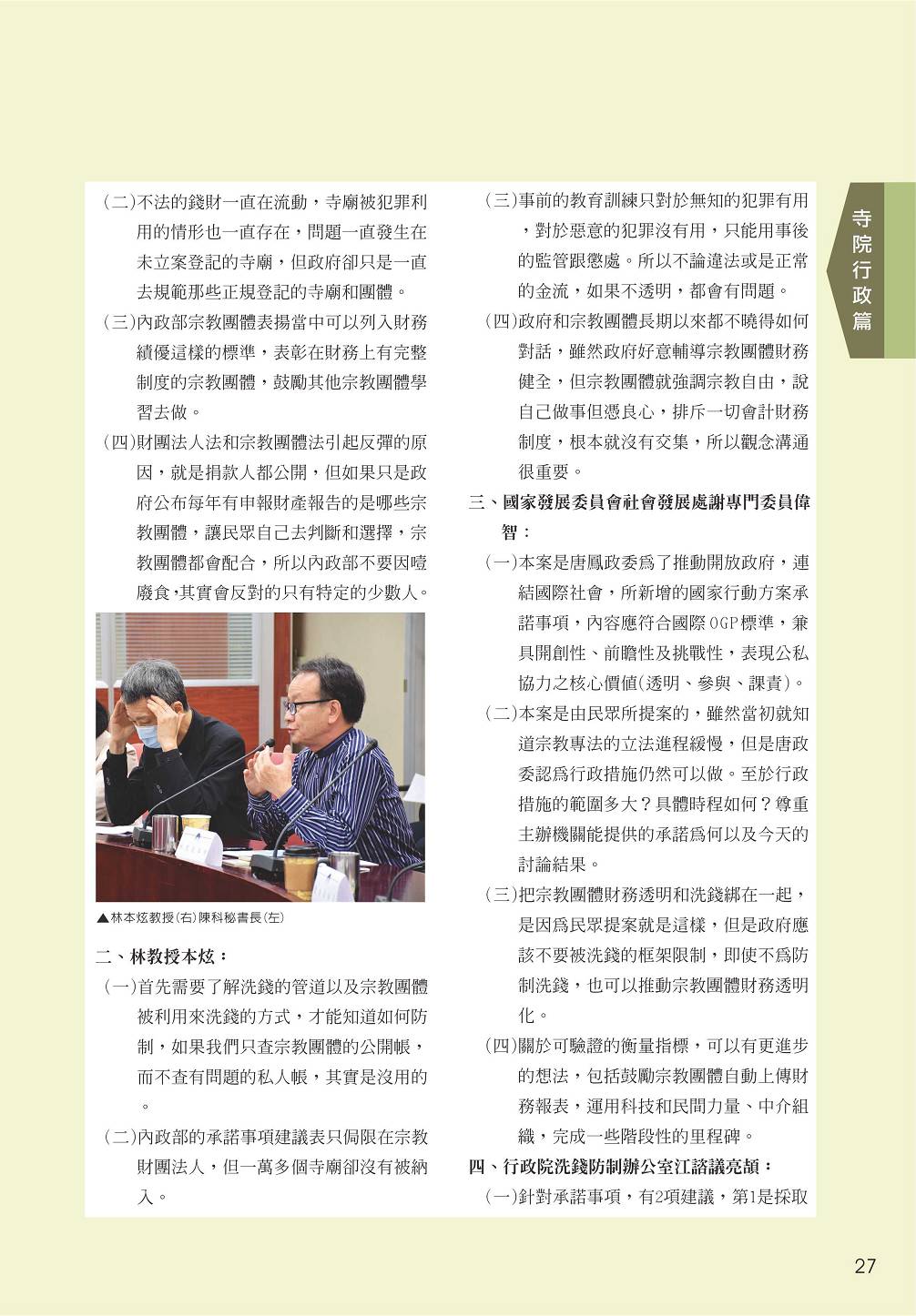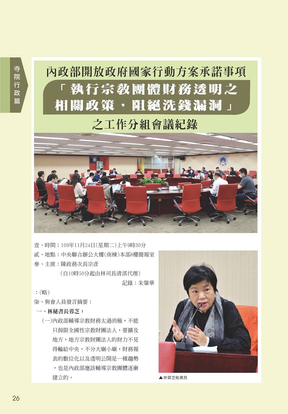 民國109年11月24日內政部執行宗教團體財務透明相關政策會議紀錄