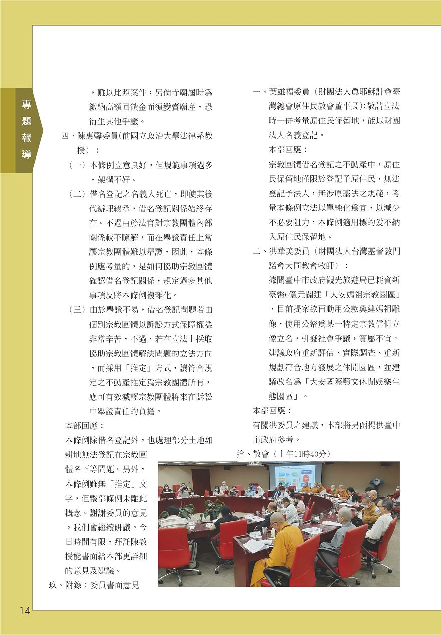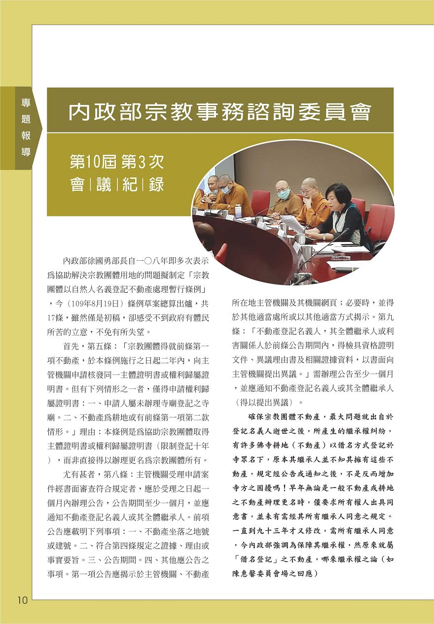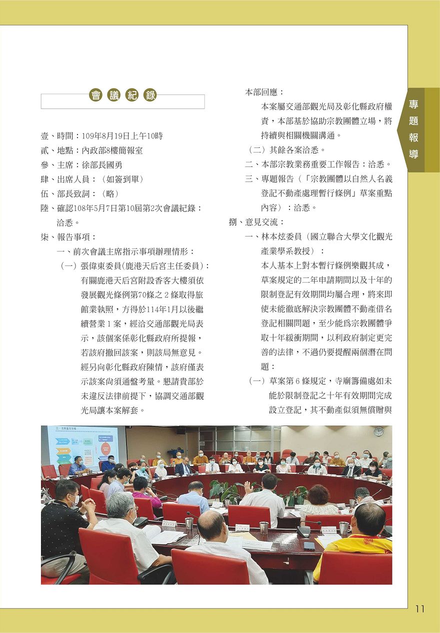 民國109年8月19日內政部宗教事務諮詢委員會第10屆第3次會議紀錄