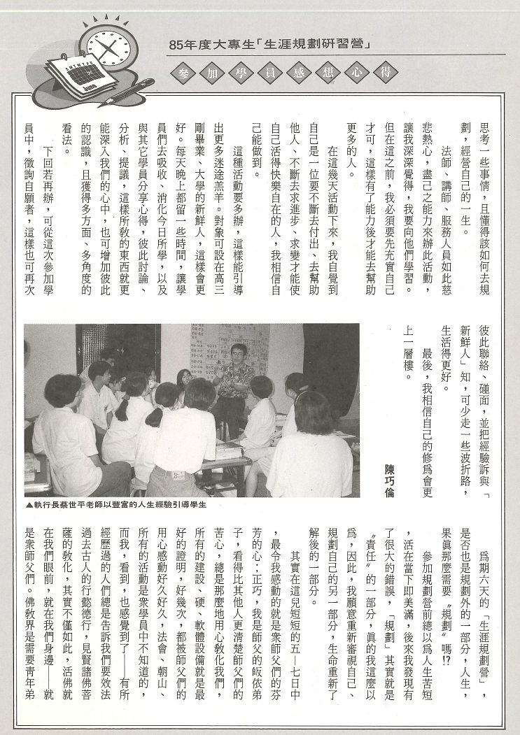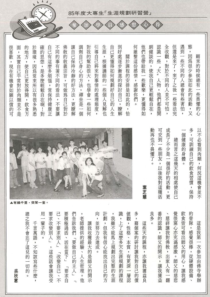 85年度大專生生涯規劃研習營