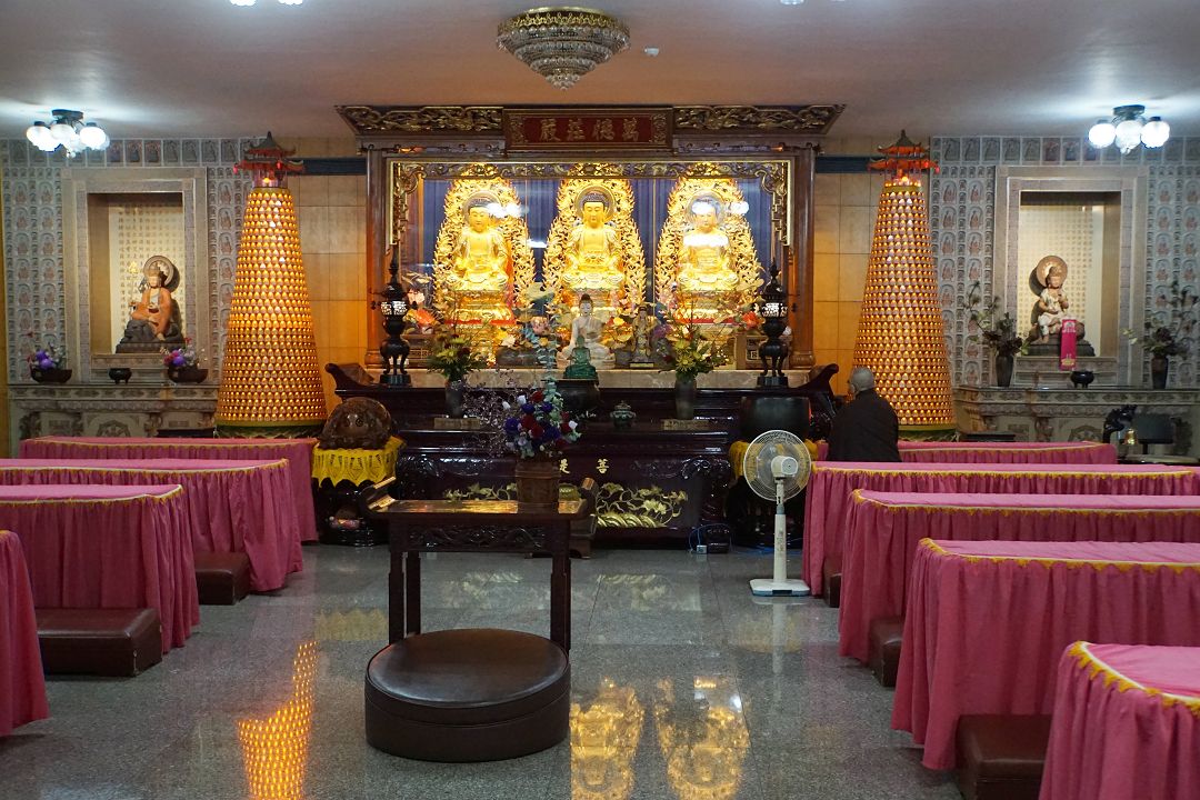 民國77年(公元1988年)寺舍老舊不堪使用於是重建,於民國81年(公元1992年)竣工落成,成為地上四層地下一層之中國宮殿式現代建築,設計精巧、典雅巍峨,加上交通非常便捷,是諸上善人聚會一處、善知識雲集的莊嚴都市道場。一樓大殿仍供奉舊寺原有三聖像;二樓禪堂採樟木建造,供奉桃園大溪的木刻觀世音菩薩立像;三樓供奉寬九尺的緬甸玉雕釋迦牟尼臥佛;四樓採挑高宮殿建築,供奉緬甸釋尊坐像玉佛,兩旁天女彩繪浮雕唯妙唯肖;地下室則作為齋堂使用,整棟建物空間充分利用,連樓梯旁的空間亦規畫為和室寮房,落成當日來自全省各地的法師信徒,將狹小的巷道擠得水洩不通,盛況空前。