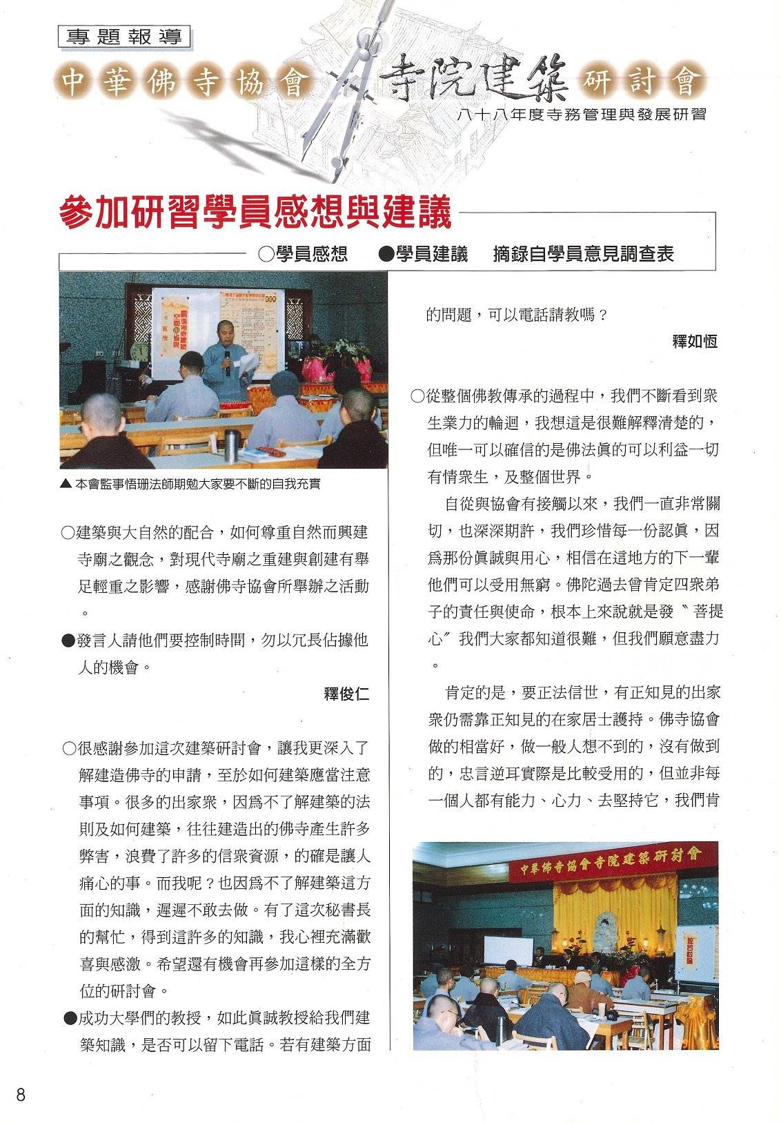 民國89年01月24~27日第八屆寺務管理與發展研習暨暨寺院建築研討會側記