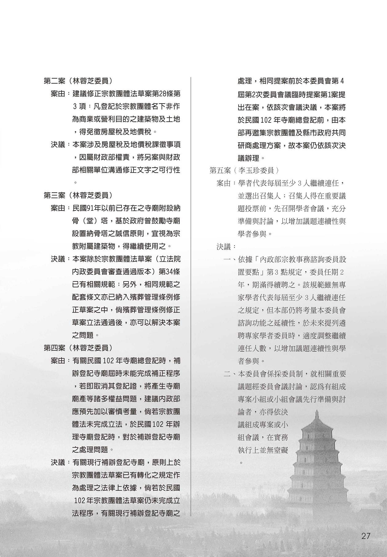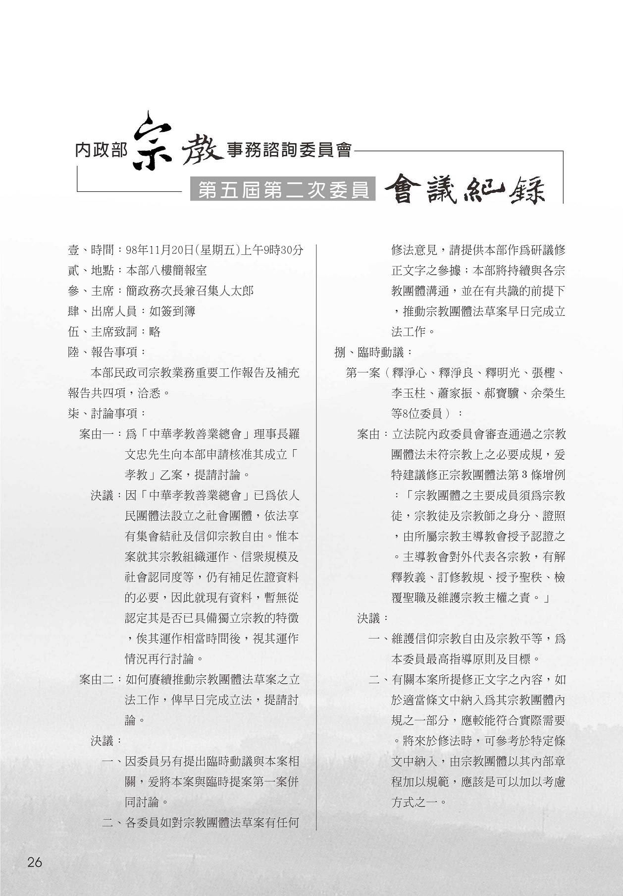 民國98年11月20日內政部宗教事務諮詢委員會第五屆第二次會議紀錄